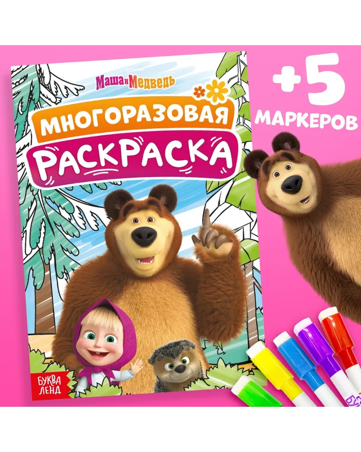 5Набор многоразовых водных раскрасок Маша и Медведь 4 шт по 10 стр Маша и МедведьХорошие раскраски, дети довольны