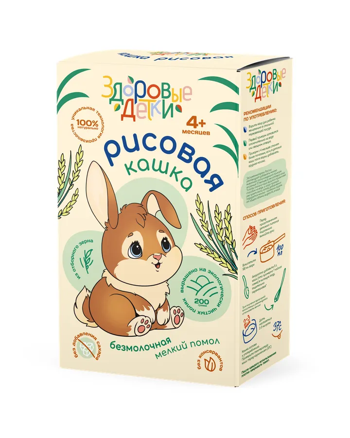 Кашка рисовая безмолочная Здоровые детки Кашка рисовая безмолочная с 4 месяцев 200 грЭта лучшая рисовая каша! Её нужно варить, но получается она просто превосходная! Не как клейстер. Ребёнок ест отлично её и никаких высыпаний и прочей штуки
