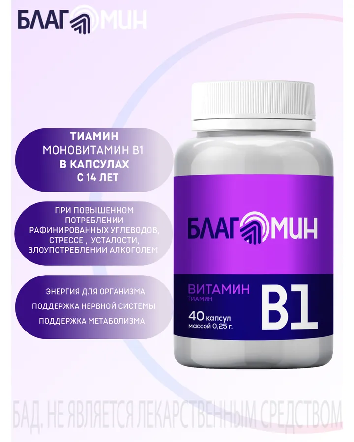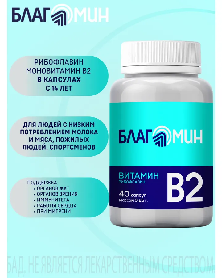 БАД Благомин Витамин В2 (рибофлавин 2мг) капсулы массой 0.25г №40