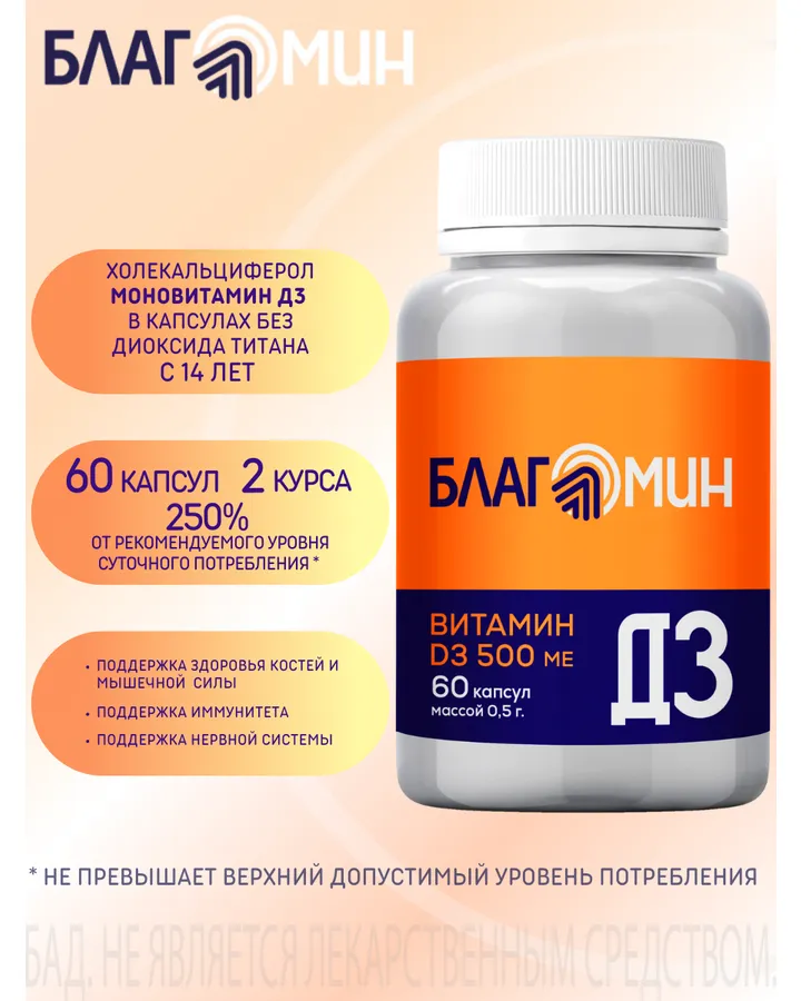 БАД Благомин Витамин Е (альфа-токоферола ацетат) 50 МЕ капсулы массой 0.25г №60