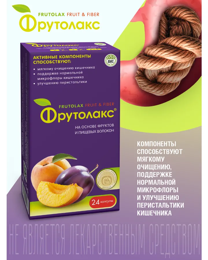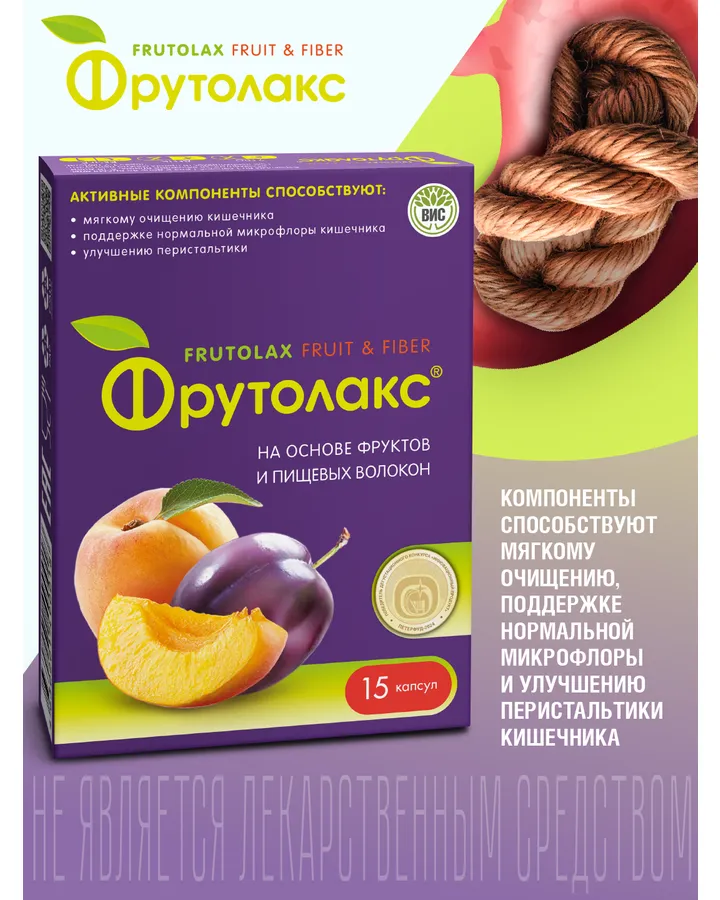 БАД Фрутолакс на основе фруктов и пищевых волокон капсулы N15