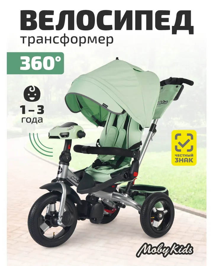 Трехколесный велосипед Moby kids 10 дюймовШикарный велосипед! Дочь отказывалась садится в коляску, но когда купили велосипед, она с него не слезает, прогулки стали в одно удовольствие!