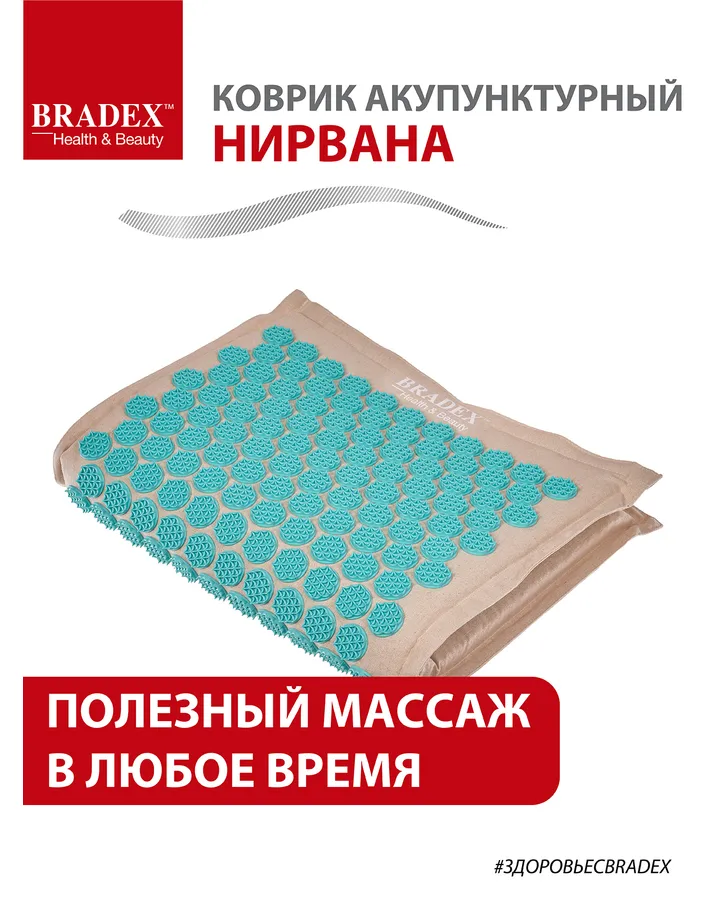 Коврик акупунктурный Bradex бирюзовый с наполнителем из кокосового волокна