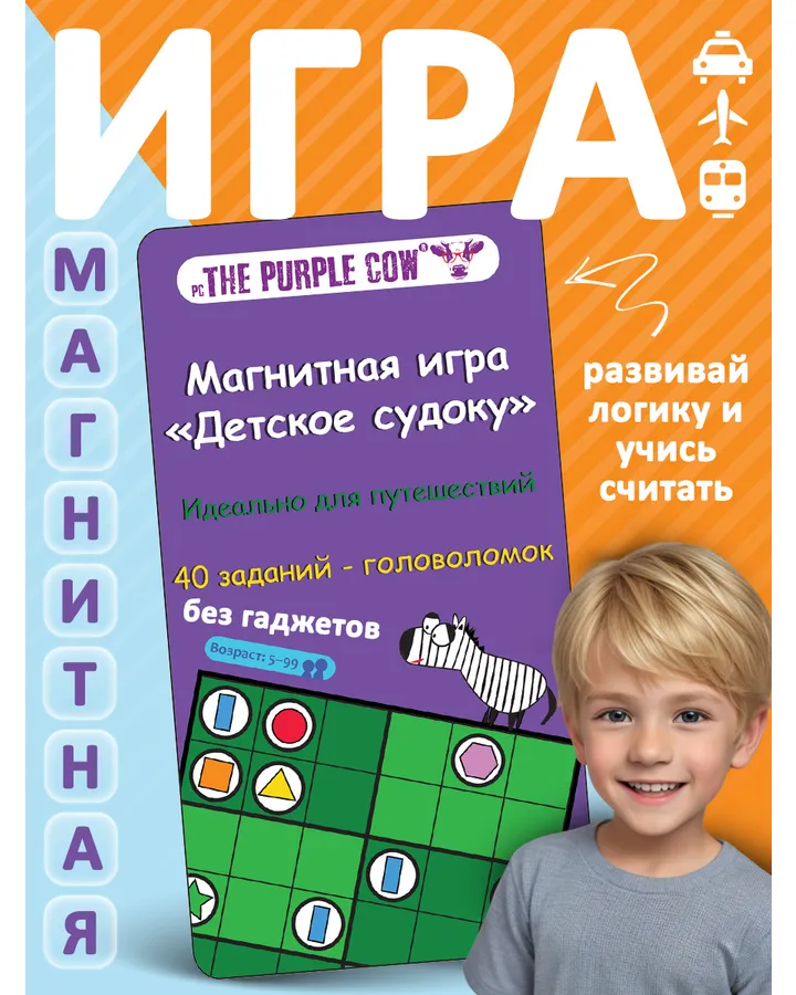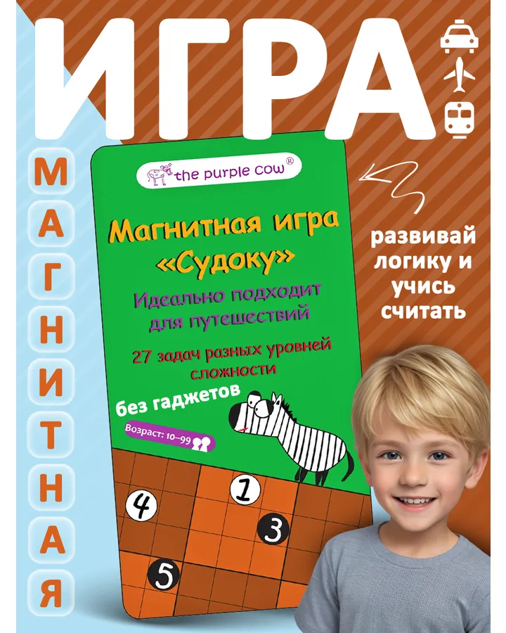 Настольная игра The Purple CowЭто супер игра. Мы в нее играли с дочкой в автобусе и электричке, в поликлинике, на улице, она брала в школу на переменах играть.... Интересно, непредсказуемо, можно почти победить, почти дойти до финиша, но наступить на лестницу вниз и откатиться оооочень далеко. Играли с 4 лет до 12лет.