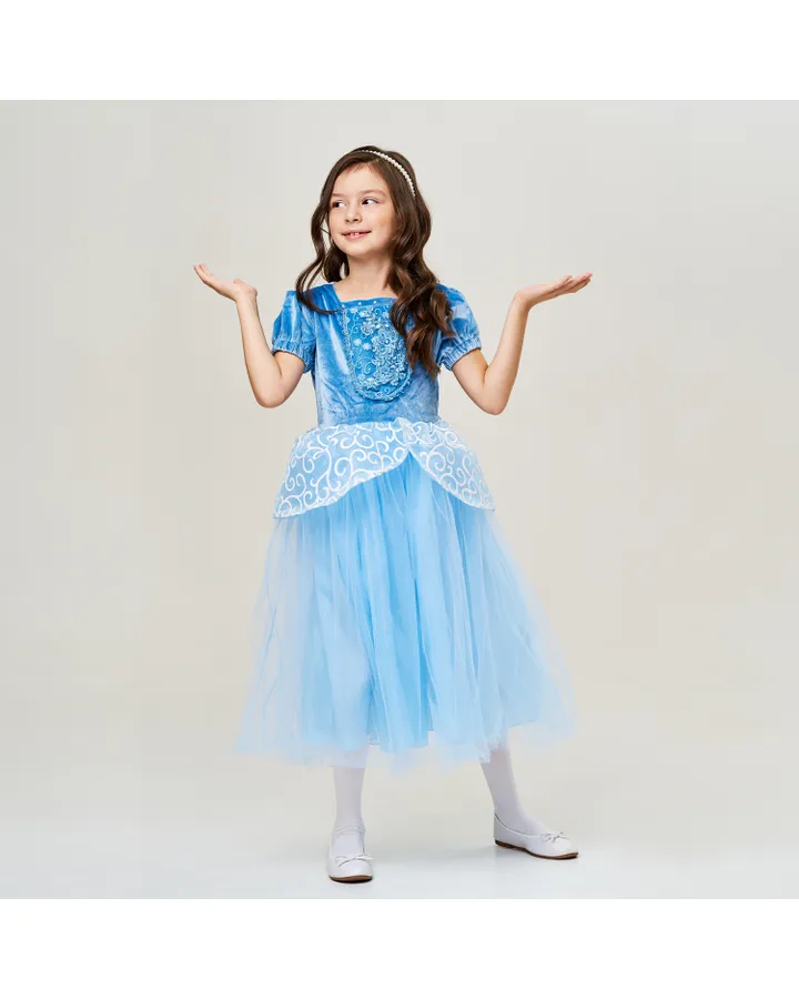 Платье EziKIDSОчень красивое платье. Дочку осыпали комплиментами в нём. Взяла на размер побольше, и дочь ходила в нём целый год на все праздники. Шлейф отстегивается, без него тоже очень красиво, но с ним просто фея снежинок)