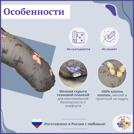 Наволочка Owl and EarlyBird на подушку для беременных 35 x 210 см 1 шт.Моя подушка из голубой плюшевой ткани (на одном из фото видно). Спать на такой не очень комфортно, т.к. синтетика неприятна к телу. Поэтому было принято решение, купить хлопковую наволочку. Наволочка сантиметров на 20 больше моей подушки. Но это я сразу видела, поэтому как только пришла наволочка, я ее подшила по размеру своей подушки. Получилось, то, что надо. Я очень довольна.