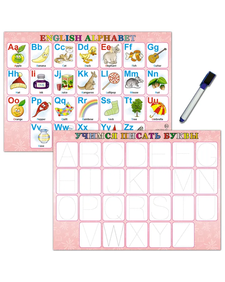Учебное пособие РУЗ Ко Алфавит английский. Учимся писать буквы. Ламинированное с маркером