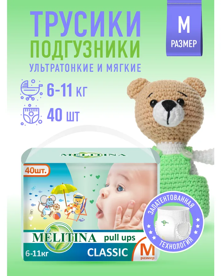 Подгузники Melitina Classic L 40 шт.Подошли идеально.