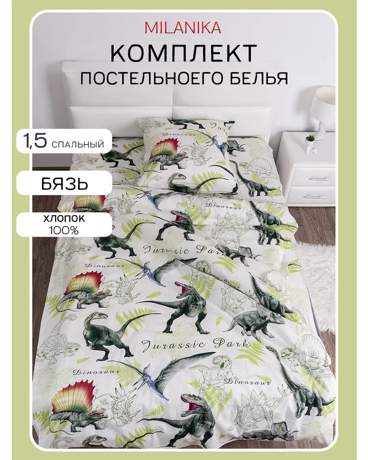 Комплект постельного белья MILANIKA Динозавры полутораспальный 3 предм.