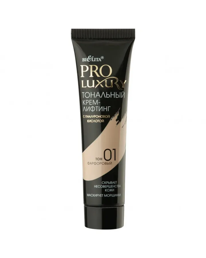 Тональный крем-лифтинг BIELITA для лица Pro Luxury с гиалоурановой кислотой тон 01 фарфоровый 30 мл
