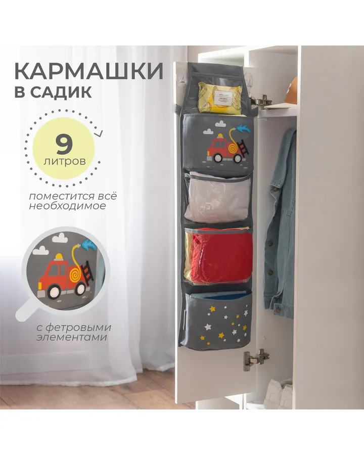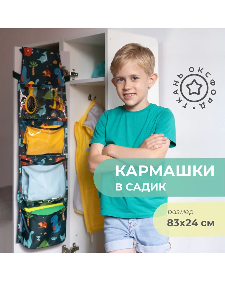 4Кармашки Всё на местах в садик для детского шкафчика КотикНормальные кормашки. Ткань конечно хотелось бы другую, более прочную.