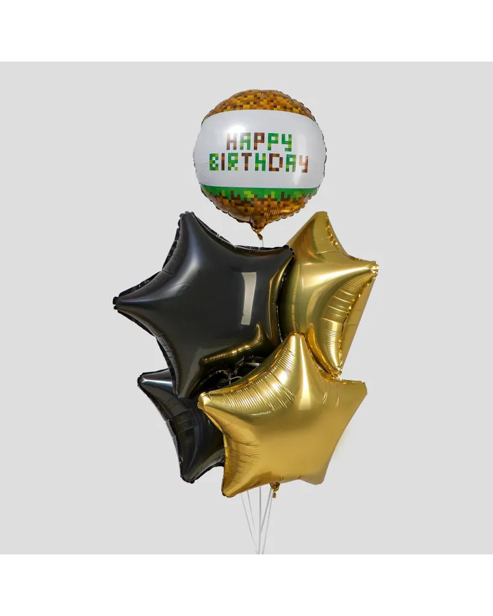 Набор шаров LETI фольгированных С Днем рождения Пиксели 5шт. черный золотой