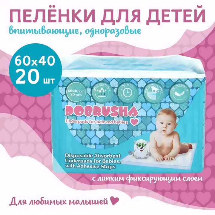 Пелёнки одноразовые Добруша 60х90 см 20 шт.