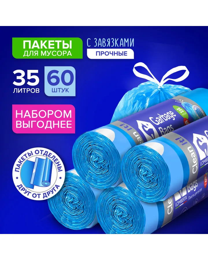 Мешки для мусора Lomberta пакеты для мусора 35 л 25 шт прочные с ручками мусорный пакет для храненияОбычные, главное не рвутся сразу, до мусорки доживают