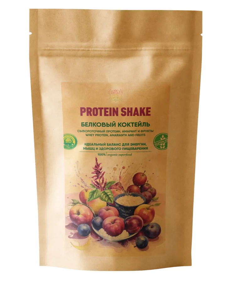 Белковый коктейль 100% чистоты Порошковая смесь из сывороточного белка, амаранта и фруктов