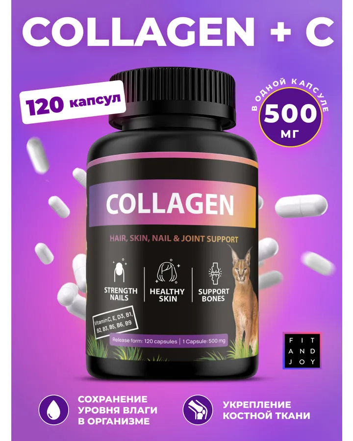 Коллаген FIT AND JOY Black Berries с витамином СПриятный вкус с молоком, растворяется полностью в теплом молоке