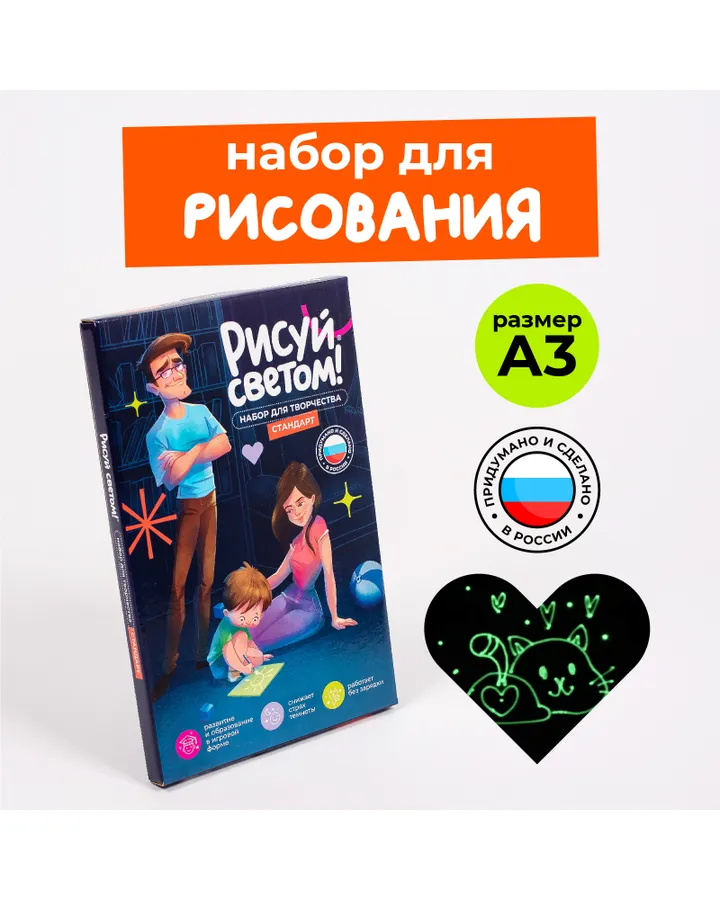 Блокнот скетчбук Рисуй светом Пушистый детектив с ручкой-шпион и наклейками