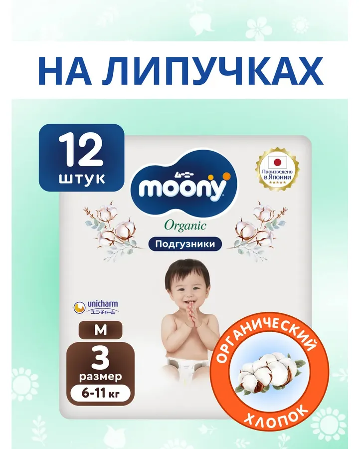 Подгузники Moony 3 (6-11 кг) 12 шт.