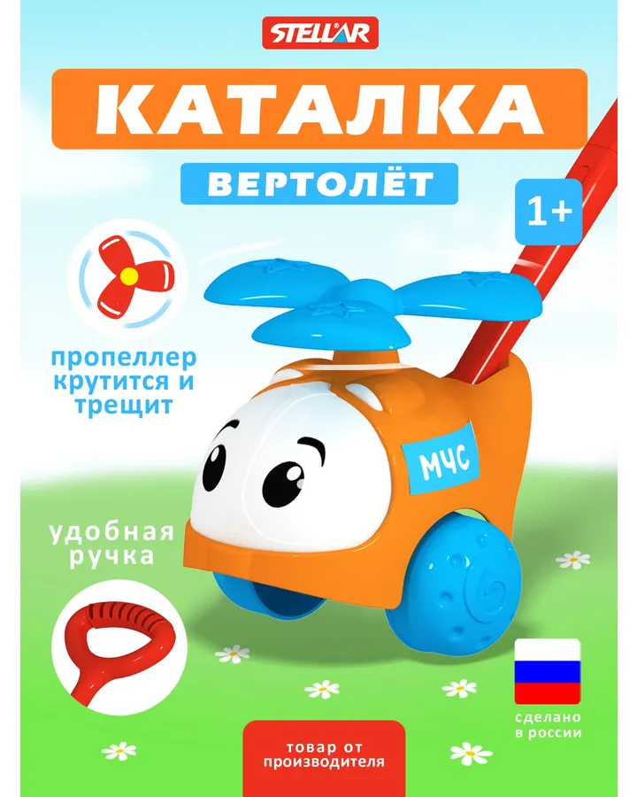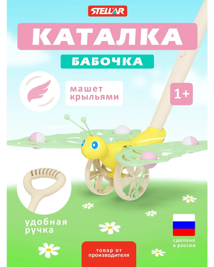 Игрушка STELLAR каталка Каталка КолобокХороший колобок, размер небольшой, ручка сборная, крепкая. Приятный звук , как погремушка. Упакован в пакет, запах отсутствует