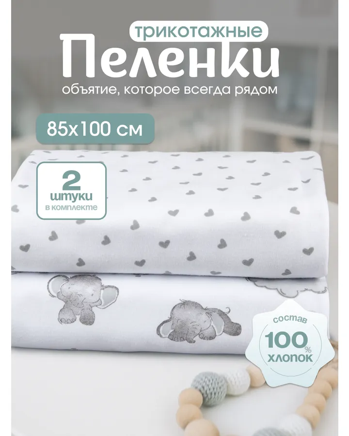 Пелёнка inlovery сердечки/клубника трикотаж 85х100 см 2 шт.👍