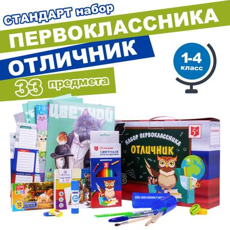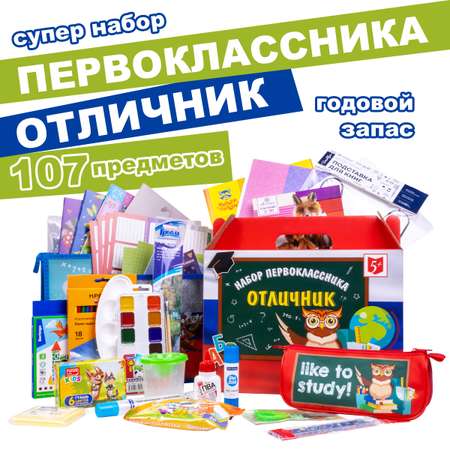 Набор школьника Отличник 57 предм.Отличный набор для подготовки к школе. Отдельно ничего не пришлось докупать, нашли в нем всё, что перечислил учитель. Приятный бонус - сама папка, которая также используется для переноски и хранения школьных принадлежностей.