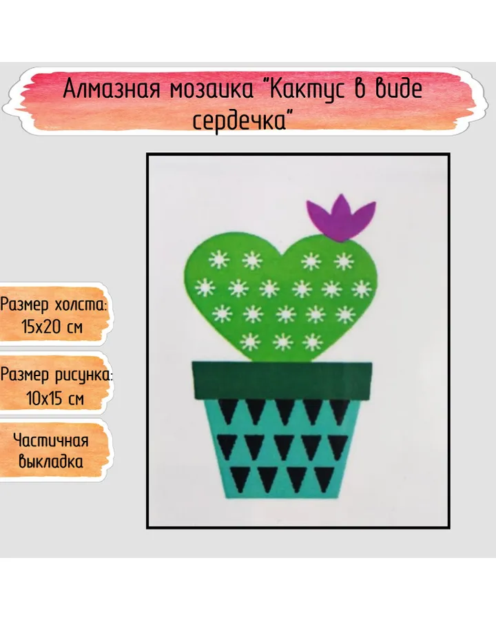 Алмазная мозаика Seichi Кактус в виде сердечка