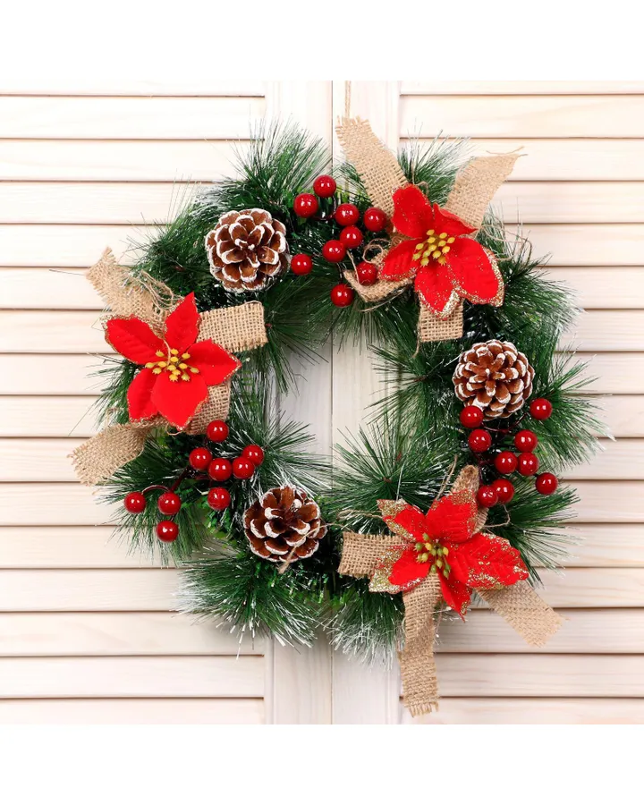 4Ёлка Зимнее волшебство виктория с калиной и шишками 120 см d нижнего яруса 80 см 322 веткиПушистая,густач