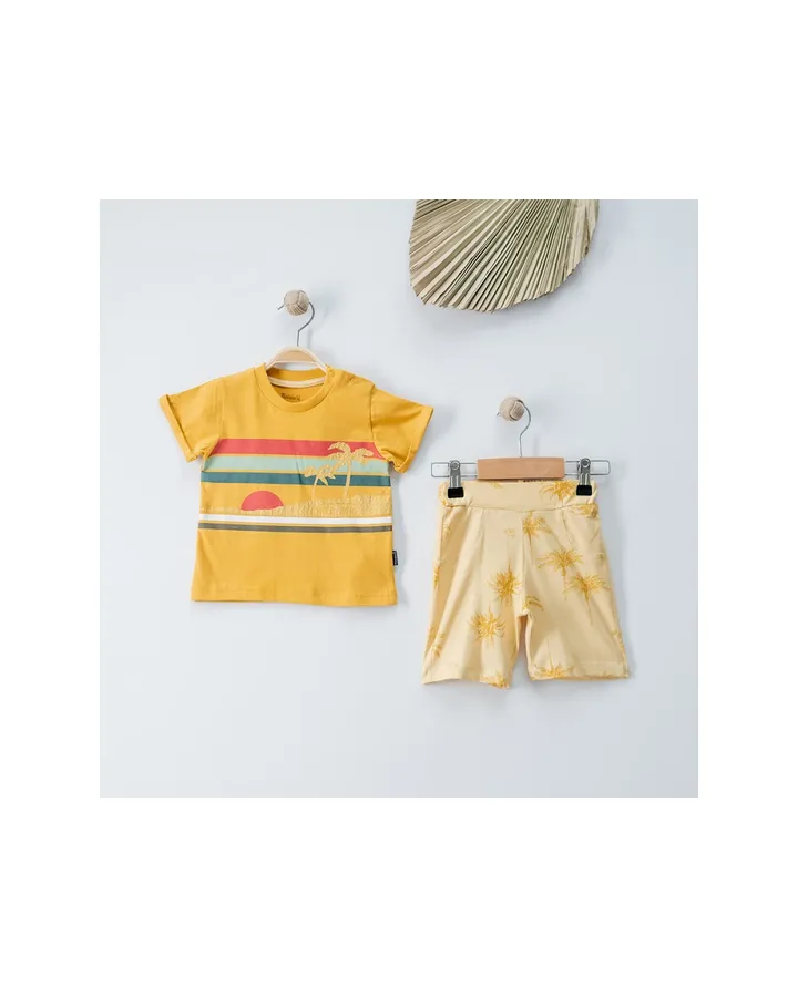 5Комплект MiniworldСимпатичный комплект. Ткань приятно тонкая, как раз в жару самое то. После стирки не деформировался. Рекомендую.