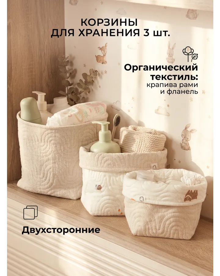 Набор корзин для хранения 3 шт BUBA KIDS Заповедный лес натуральный