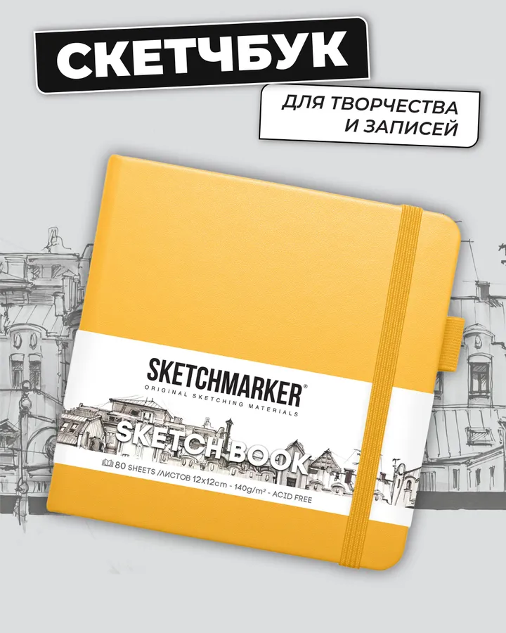 Блокнот SKETCHMARKER для зарисовок 140г/кв.м 13х21см 80л твердая обложка Розовый