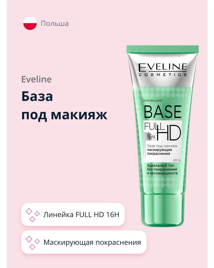 Праймер для лица EVELINE Full hd 16h маскирующая покраснения