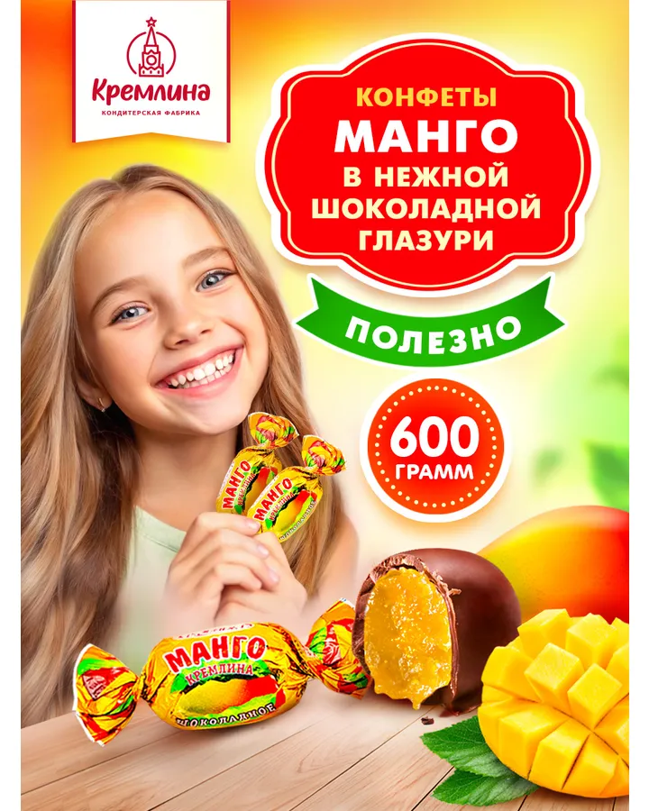 Конфеты манго в глазури Кремлина пакет 600 гр