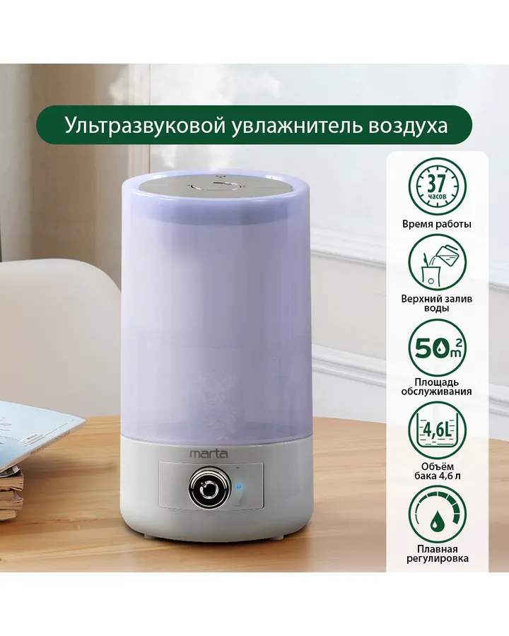 Увлажнитель воздуха ультразвуковой MARTA MT-2378 белый жемчуг верхний залив