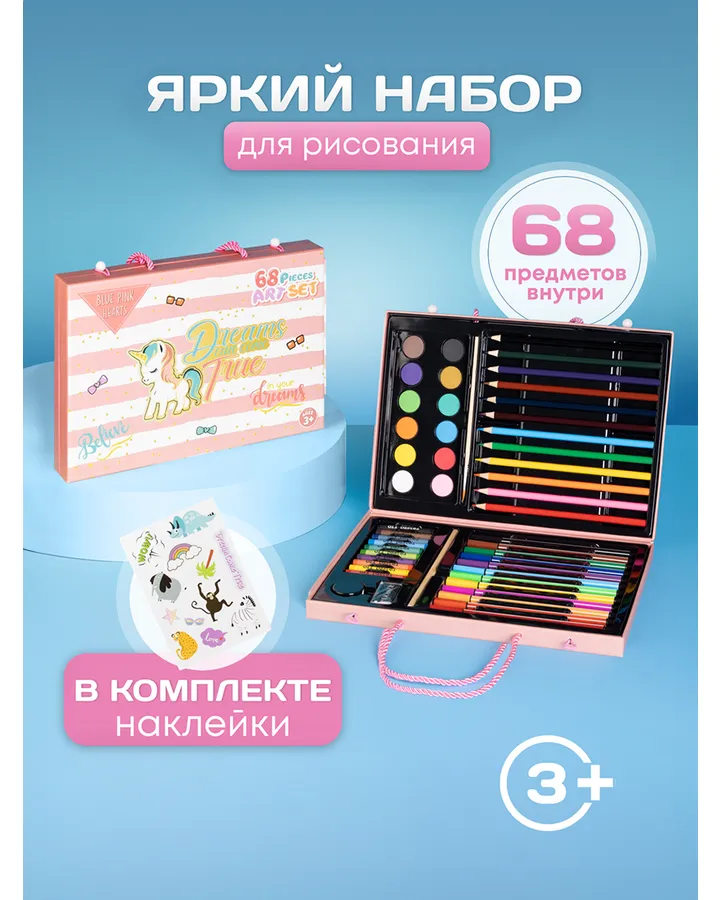 Набор для рисования Bluepink Hearts картон акварель 68 шт.
