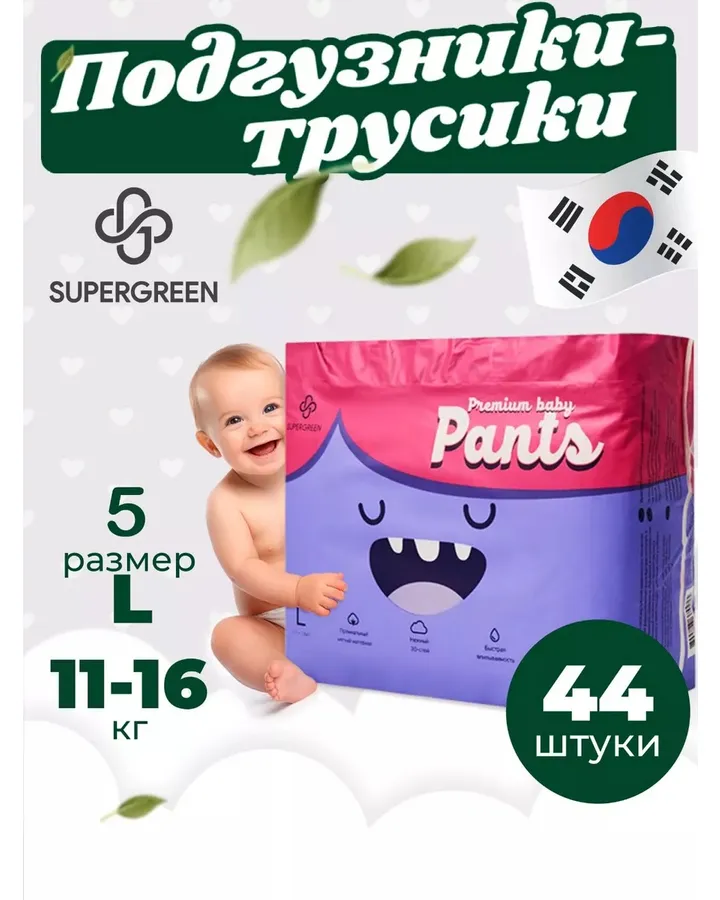 Трусики SUPERGREEN Premium L 44 шт.