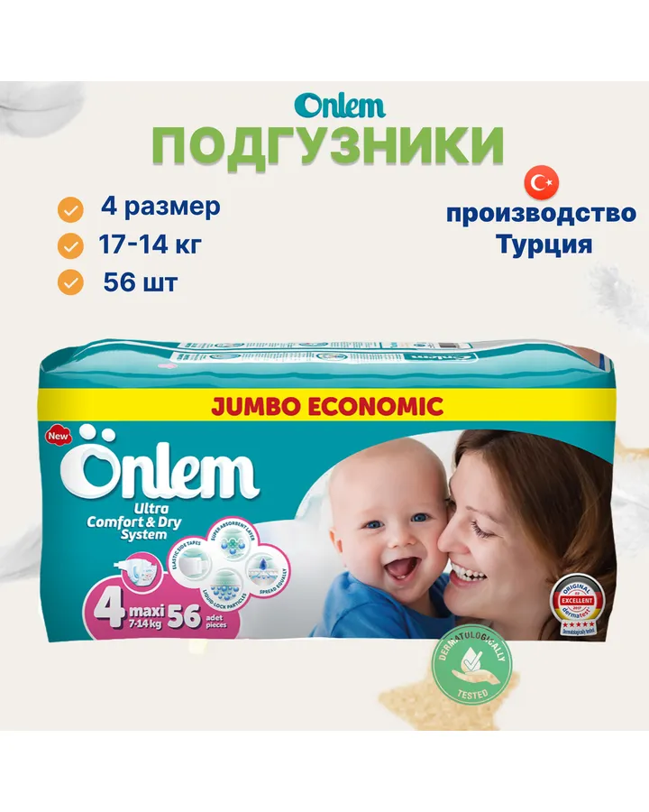 Подгузники Onlem для новорожденных 4 (7-14 кг) 56 шт.