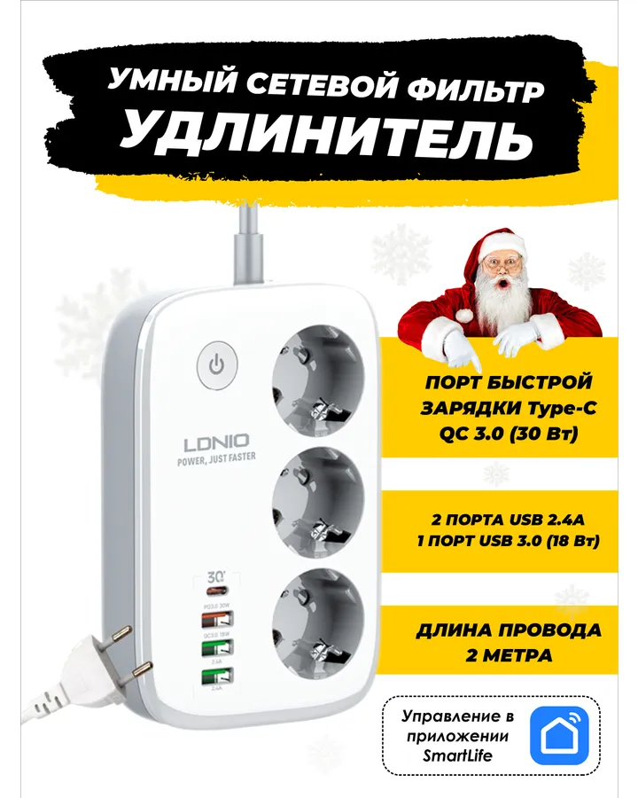 Умный сетевой удлинитель SmartRules фильтр с управлением через смартфон