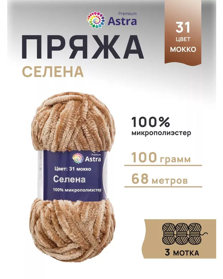 5Пряжа для вязания Astra Premium детская из акрила и шерсти для детских вещей 90 гр 270 м 233 кофе 3 моткаСупер!