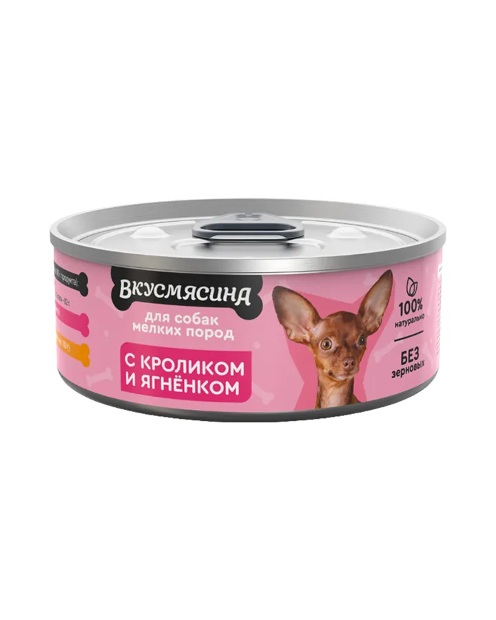 Корм для собак Вкусмясина 100г с кроликом и ягненком ж/б