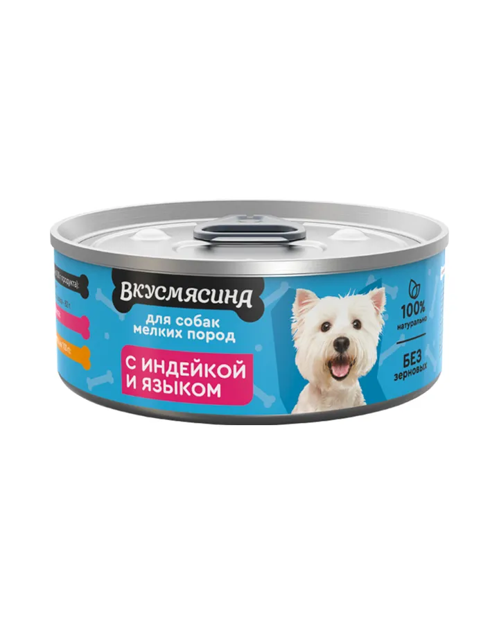 Корм для собак Вкусмясина 100г с индейкой и языком ж/б