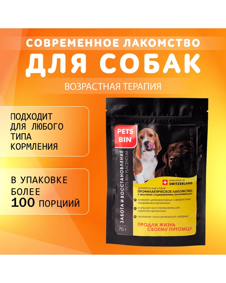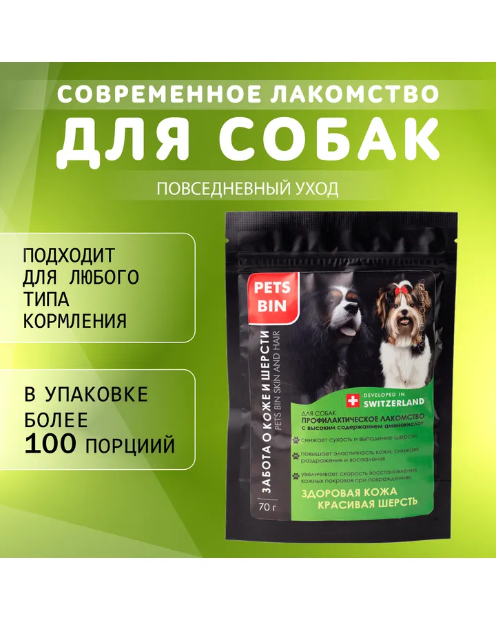 Лакомство для собак PETS BIN Skin and Hair для кожи и шерсти с коллагеном 1 2 и 3 типа 70 гШерсть у собачки стала намного лучше, прекратилась линька