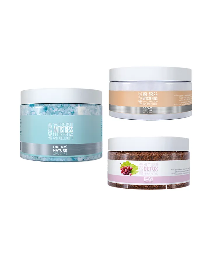 Средства для ванн DREAM NATURE SPA CARE соль и скраб для тела антистресс и детокс