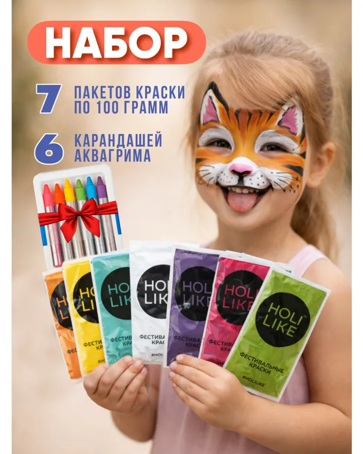Краски холи с аквагриммом Holi Like 7 шт