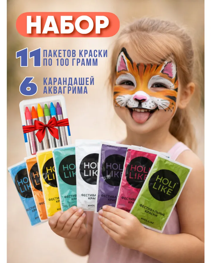 Краски холи с аквагриммом Holi Like 11 шт
