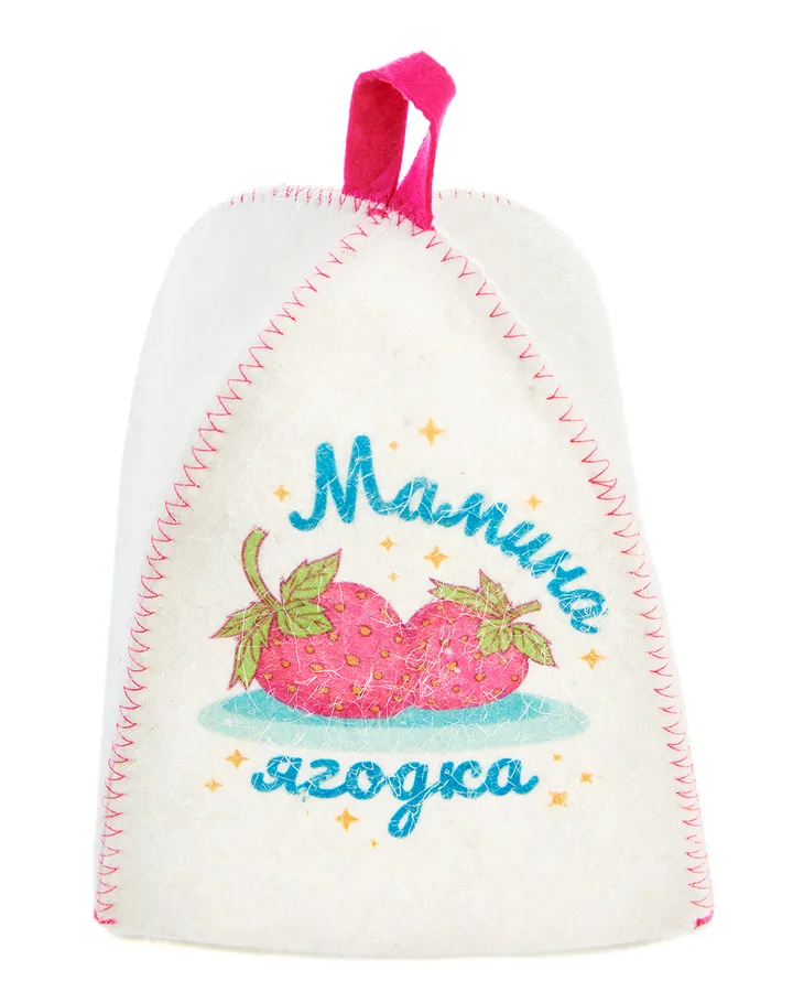 Шапка для бани и сауны с вышивкой \"Енот\", женская , фетр белый