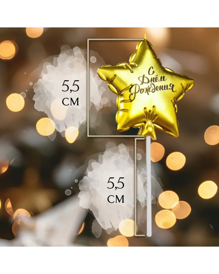 Свеча в торт Страна Карнавалия Воздушный шарик Звезда 5,5 см золотая