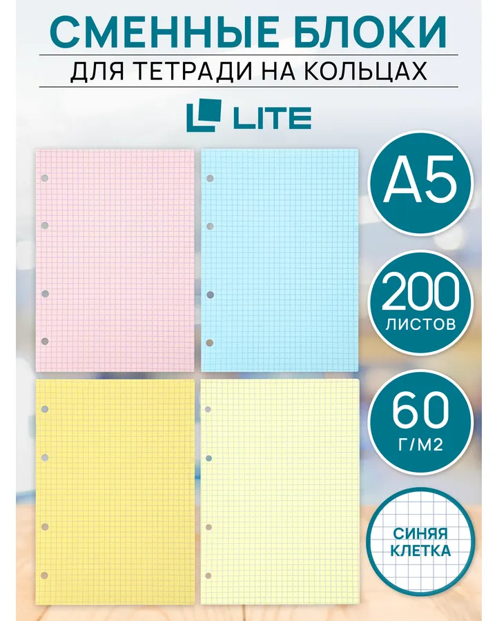 Тетрадь со сменным блоком LITE клетка 160 лист.