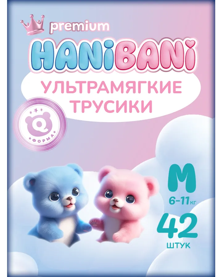 Трусики HANIBANI Premium Soft M (6-11 кг) 42 шт.Очень удивила упаковка, вся блестит! Трусики нерееально мягкие и тонкие 🤗 У нас ничего , нигде не протекло Я удивлена, что так мало мамочек знают об этой фирме, потому что они действительно очень мягенькие и тоненькие В общем, рекомендую ❤️🔥❤️🔥