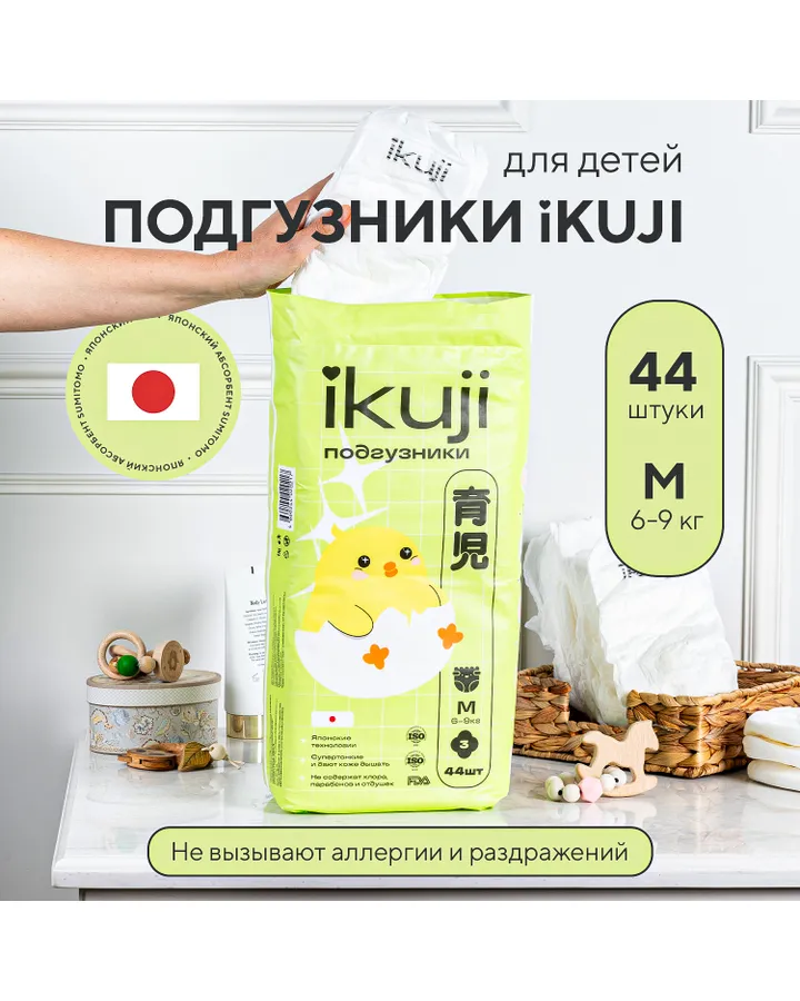 5Трусики Ikuji L (9-12 кг) 44 шт.Хорошие трусики, не протекают, не такие мягкие как другие японские, но малышу дискомфорта не доставляло.