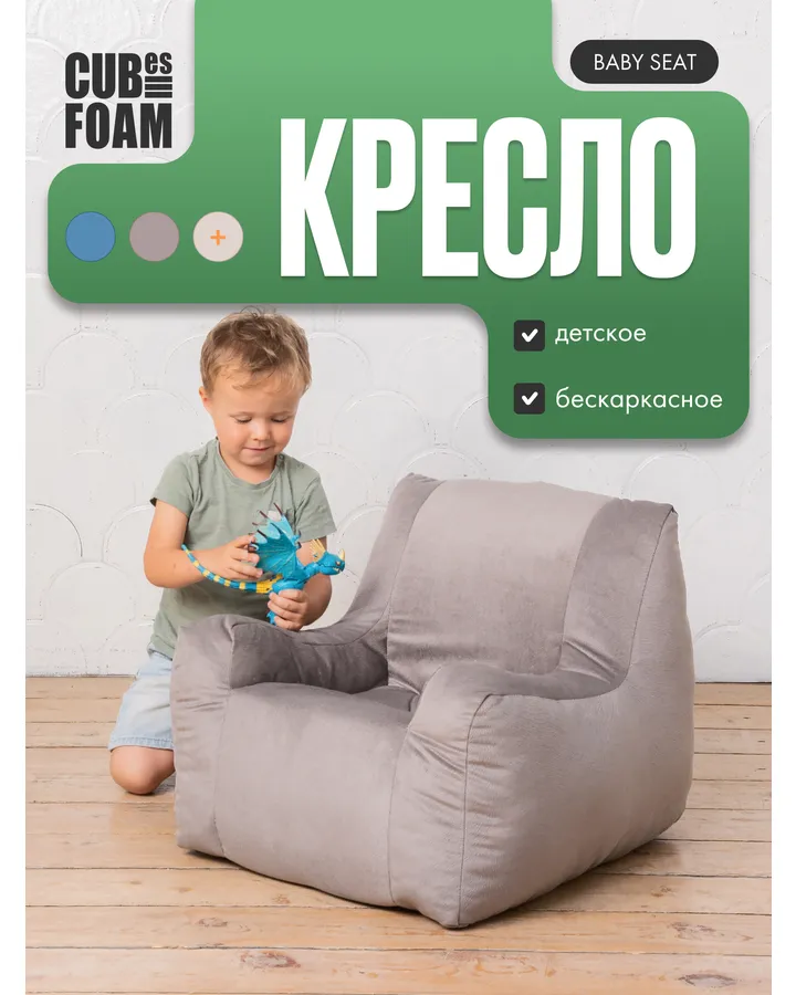Кресло CUBes FOAM Baby Seat серыйУстойчивое, плотное